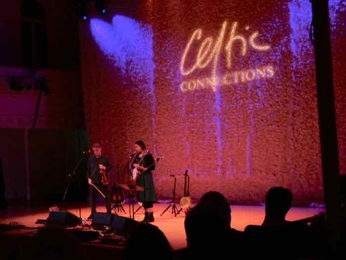 Photograph of Rhiannon Giddens and Dirk Powell at Celtic Connections in Glasgow by Kerry Dexter.